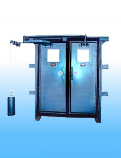 本無壓風門由門框、門扇、平衡機構及配重等部分組成。
